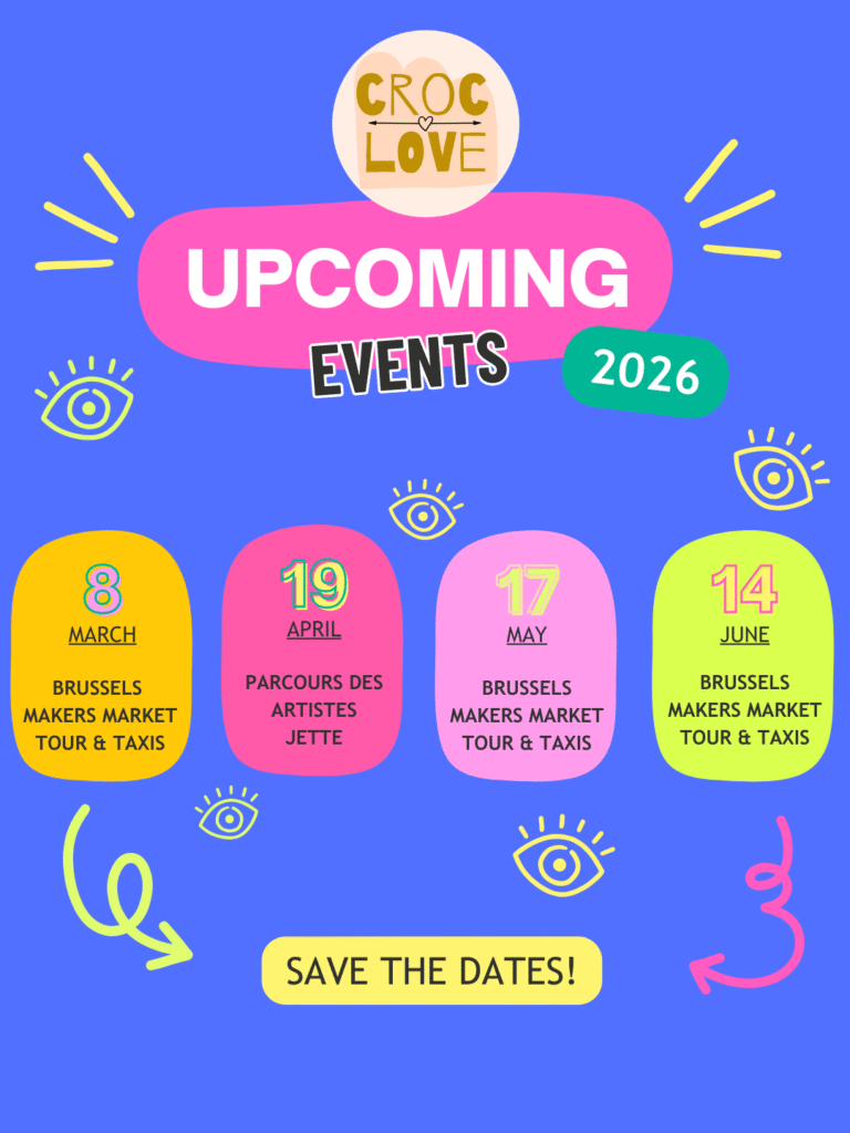 Voici les prochains événements et marchés de créateurs auxquels Croc Love participera en 2026. Tout au long de l’année, vous pourrez retrouver nos accessoires textiles faits main lors de différents événements artisanaux en Belgique.