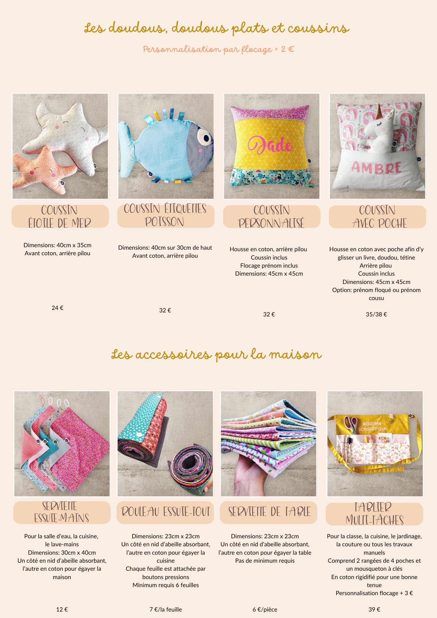 CatalogueTous les articles repris dans le catalogue peuvent être commandés sur-mesure selon vos choix de coloris, tissus et personnalisation. Pour commander, rendez-vous ICI
